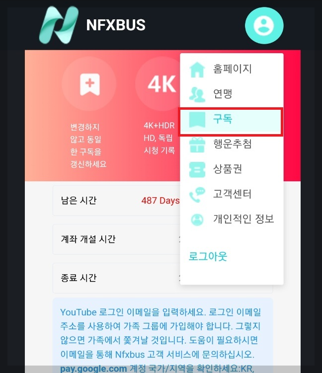 결제후에 다시 사이트에서 우측 상단 사람 모양 클릭후 '구독'버튼을 누르세요