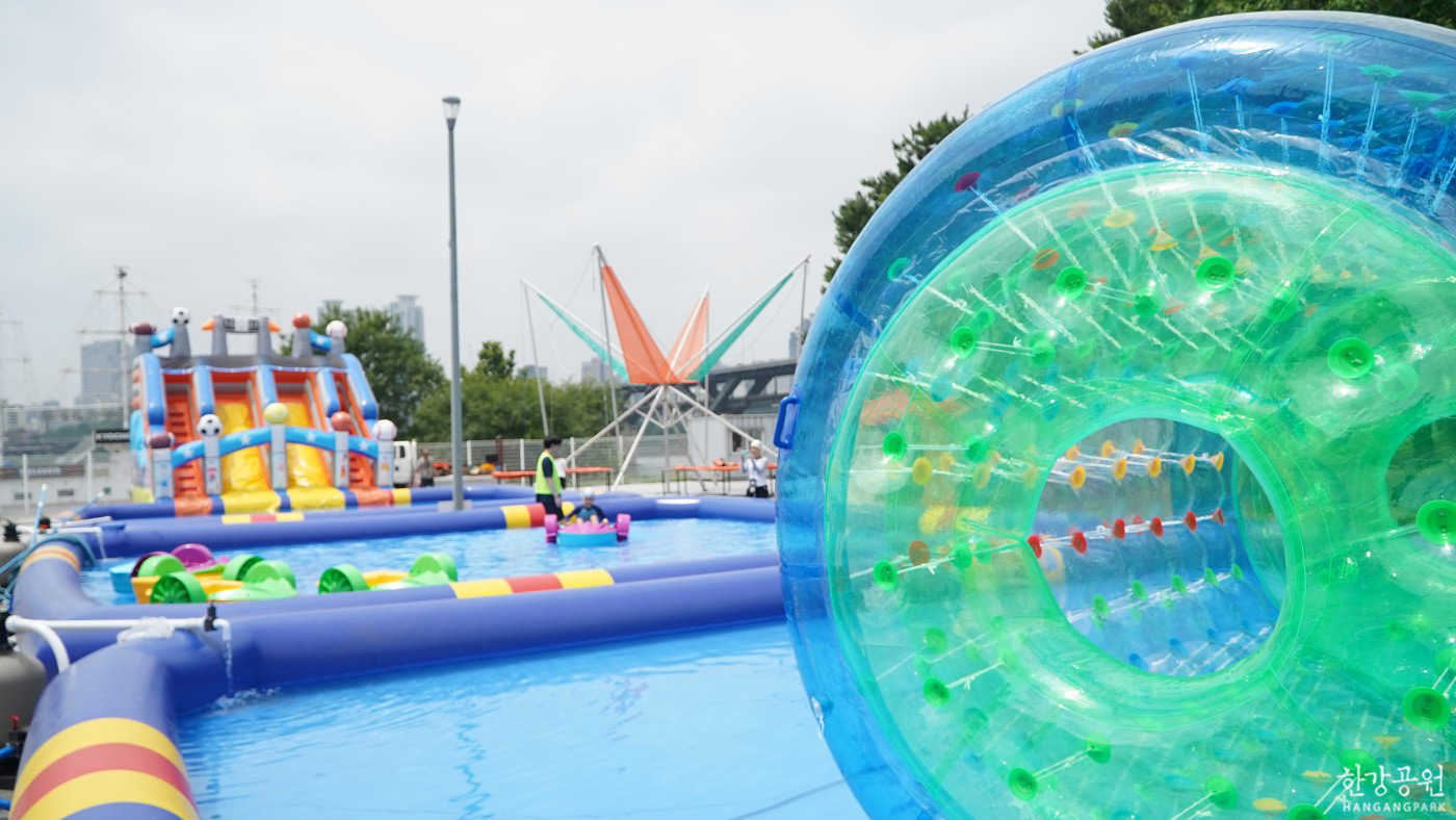 - 시원한 물줄기가 쏟아지는 아쿠아링과 에어바운스, 슬라이드, 통돌이 등 다양한 놀이기구가 비치되어 있습니다.
